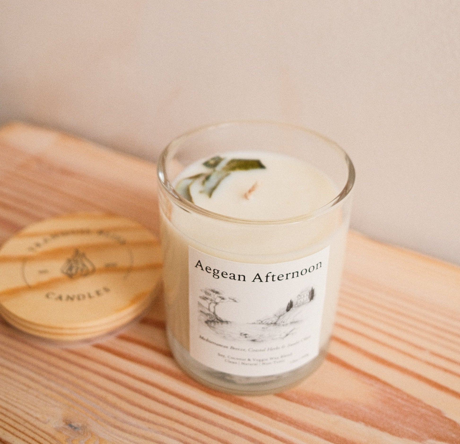Indulge in the tranquil allure of the Mediterranean with our Aegean Afternoon candle. Inspired by the enchanting Greek Islands, this luxurious scent evokes the essence of sun-drenched shores and coastal breezes.