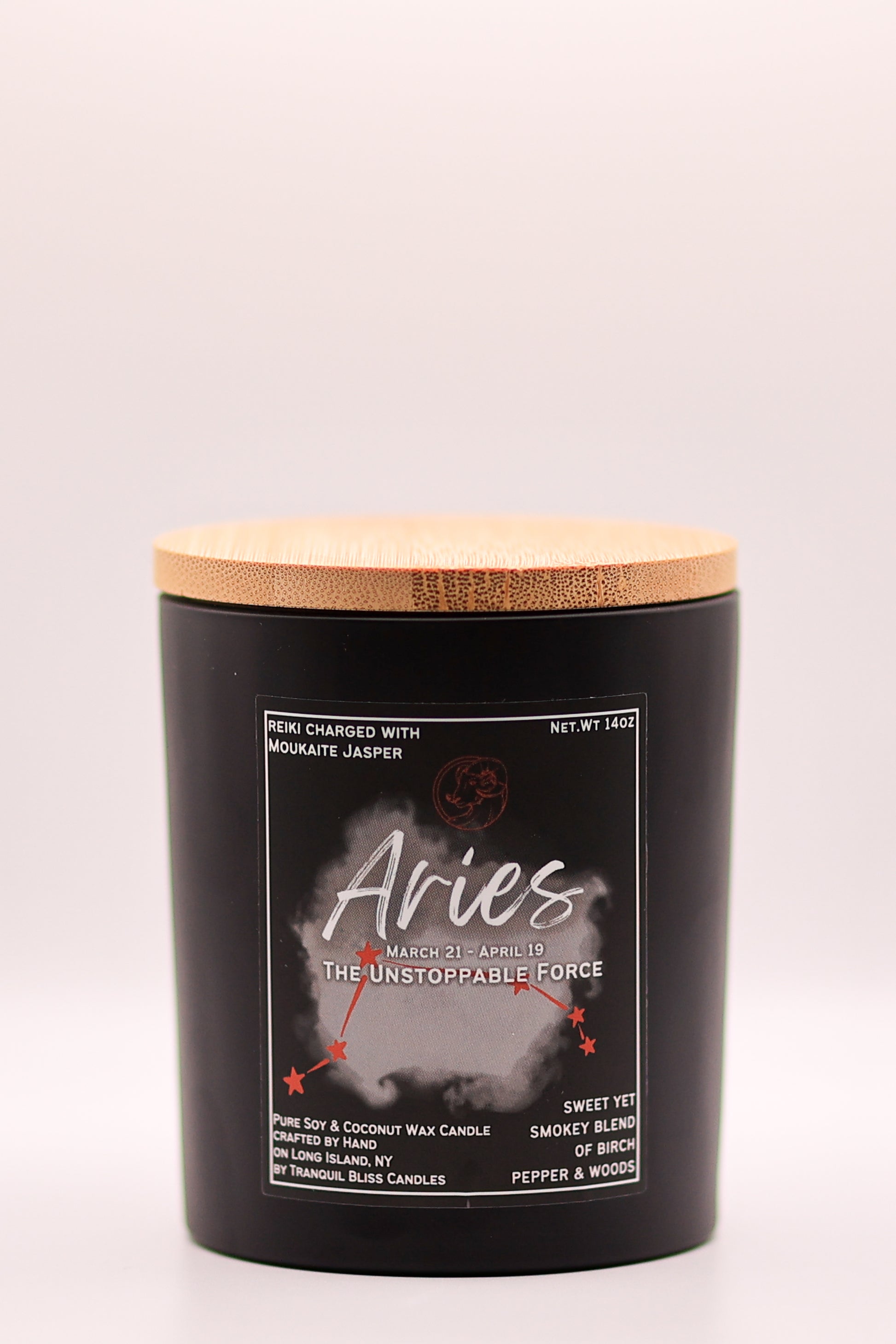 Unleash your inner fire with our 'Aries' candle, a bold and dynamic blend that captures the essence of the unstoppable Aries spirit. This fragrance combines sweet and smoky notes, with hints of pepper and woods, igniting your senses with passion and vitality.