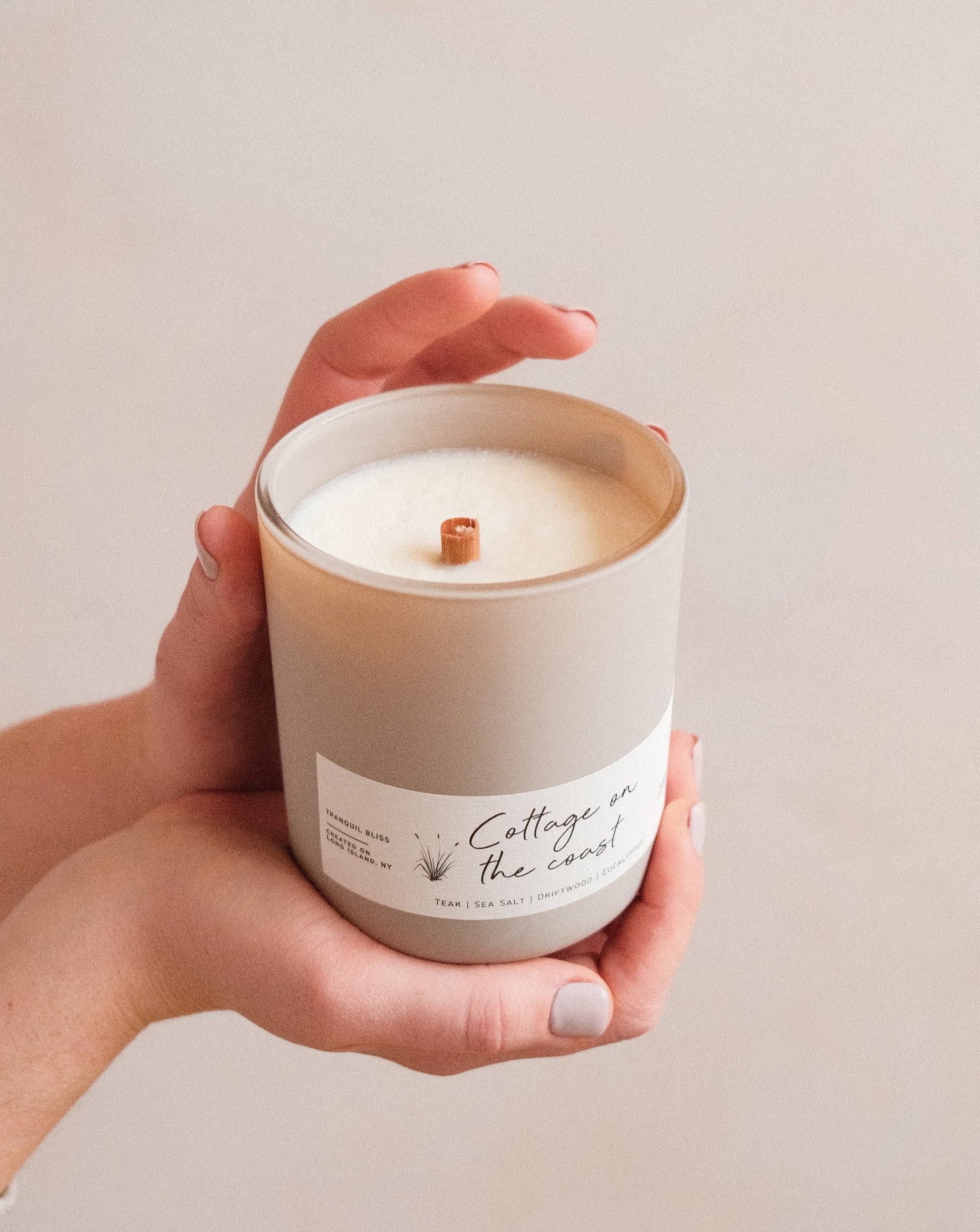 Step into the enchanting world of coastal serenity with our 'Cottage on the Coast' candle. Encased in a stonewashed jar of neutral taupe, echoing the calming hues of the seaside, this blend embodies the peaceful allure of a New England cottage by the shore.