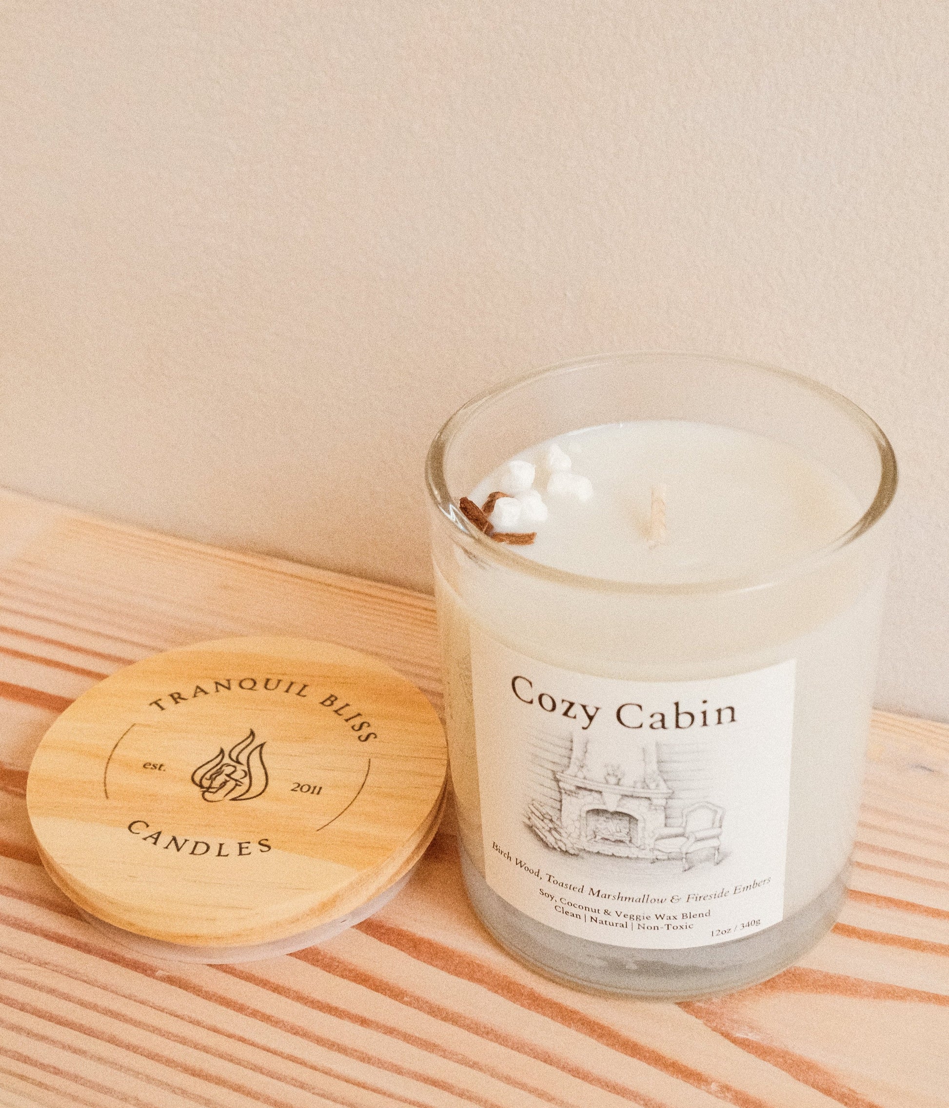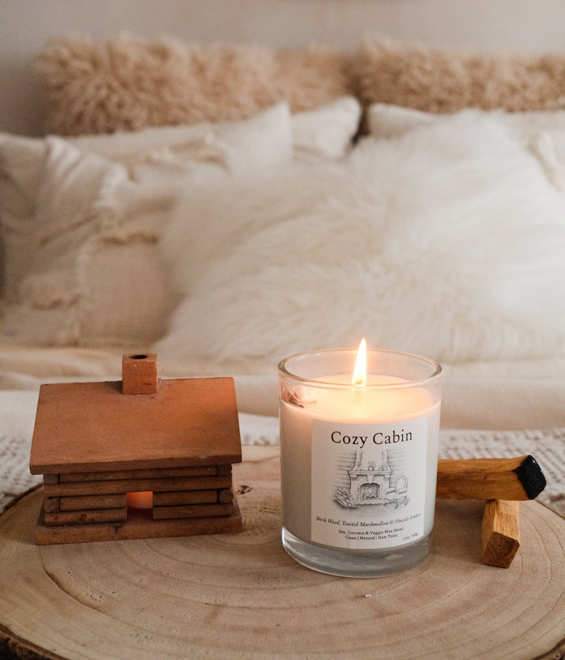 Transform your space with the comforting and nostalgic scent of our Cozy Cabin candle. This exquisite blend of Birch Wood, Toasted Marshmallow, and Fireside Embers creates a warm and woody aroma perfect for all seasons, especially autumn and winter.