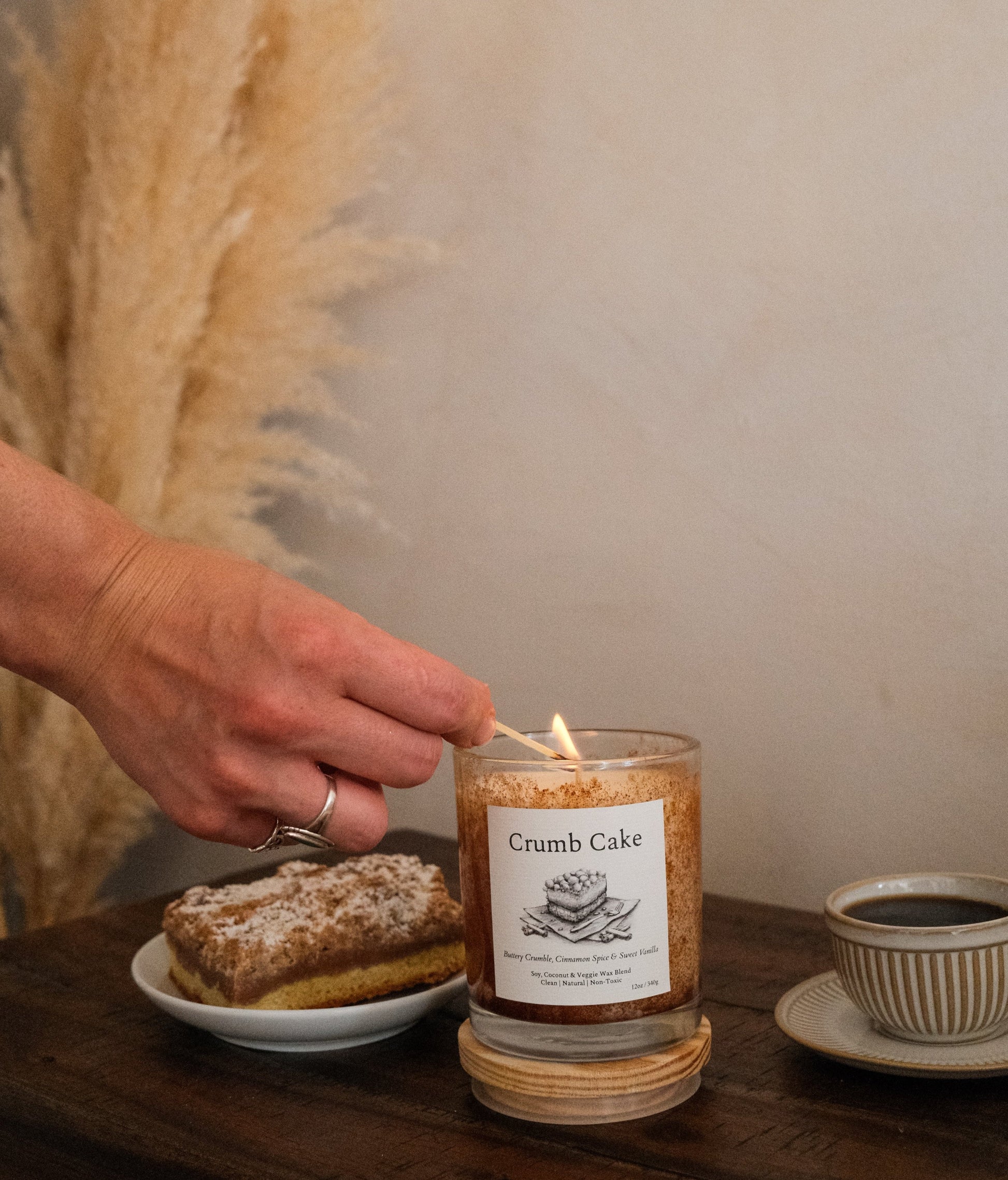 Indulge in the delightful aroma of our "Crumb Cake" candle, a perfect blend of warm, buttery cake and sweet, cinnamon-sugar crumble. This inviting scent evokes the comforting memories of freshly baked crumb cake straight from the oven. With notes of vanilla, brown sugar, and a touch of spice, this candle creates a cozy and welcoming atmosphere in any room.
