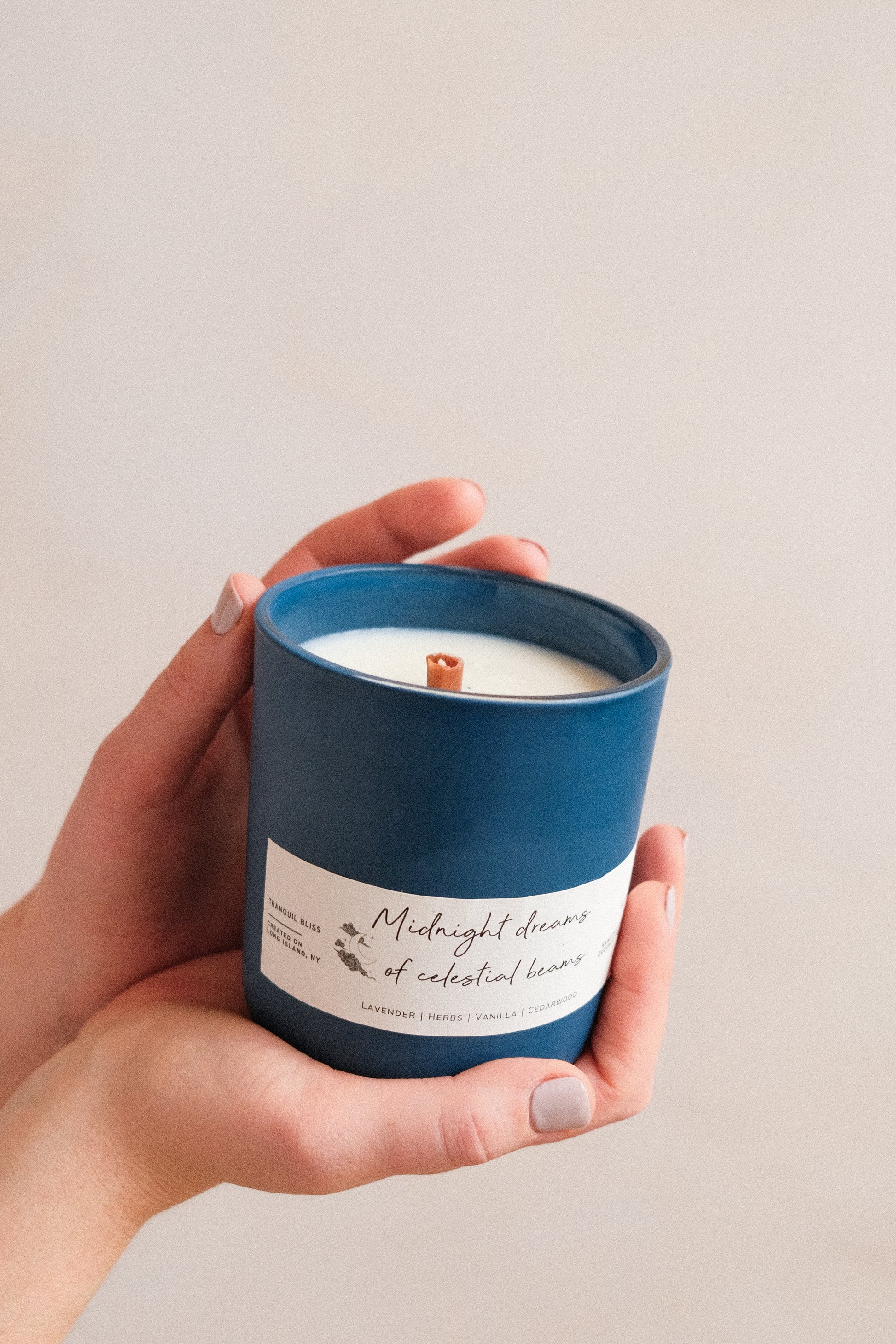Surrender to the allure of 'Midnight Dreams of Celestial Beams.' Encased in a deep Navy blue matte jar, this celestial blend weaves Lavender, Cedarwood, Honey, Peppermint, Vanilla and Chamomile into a comforting tapestry reminiscent of dreaming about otherworldly wonders in our cosmic unknown.Â