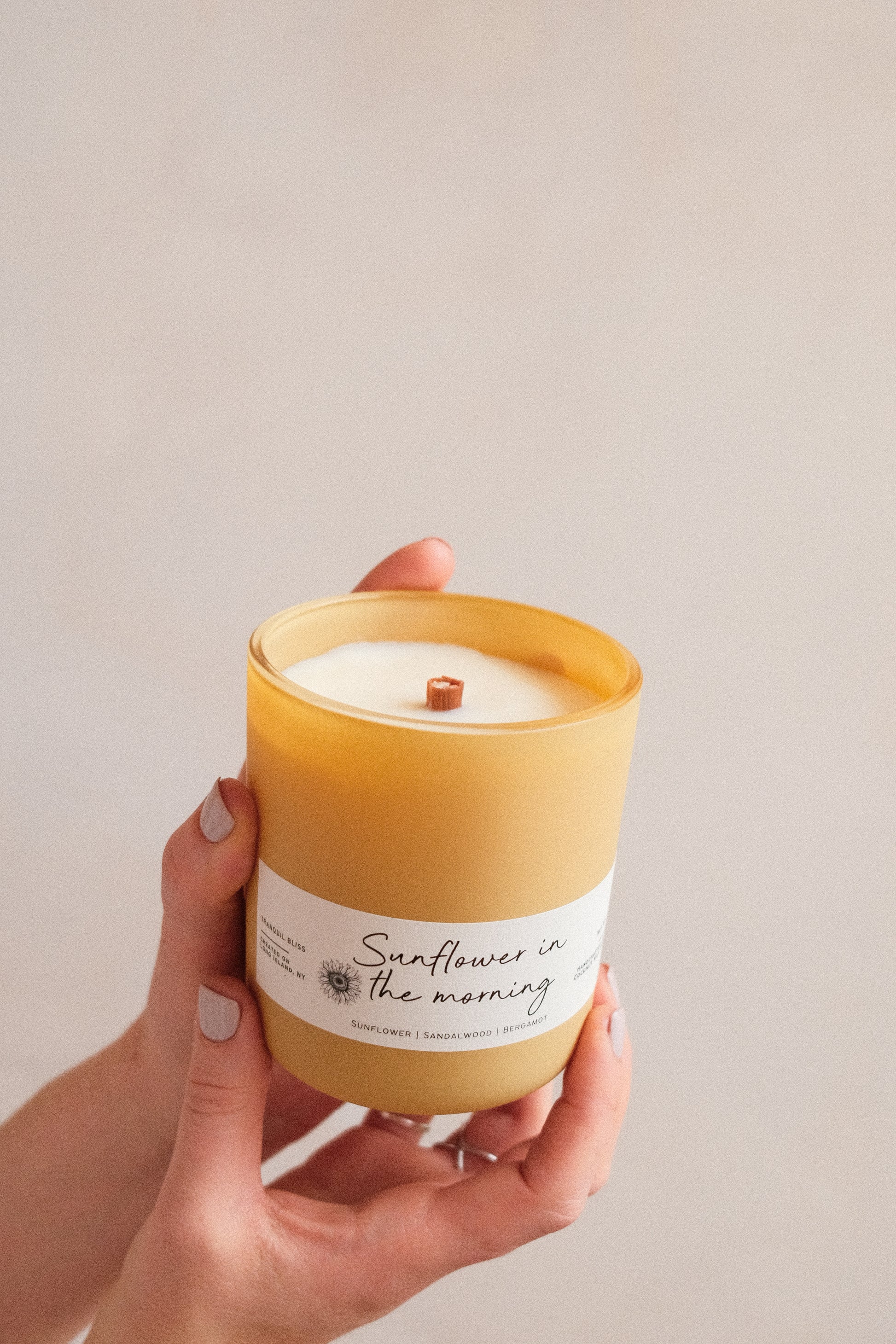 Embrace the joy of a new day with Sunflower in the Morning, a radiant and uplifting scent captured in a matte sunflower yellow jar. Inspired by the bright beauty of sunflowers, this warm and grounding floral blend features the sun-kissed notes of Sunflower, Bergamot, and Sandalwood.