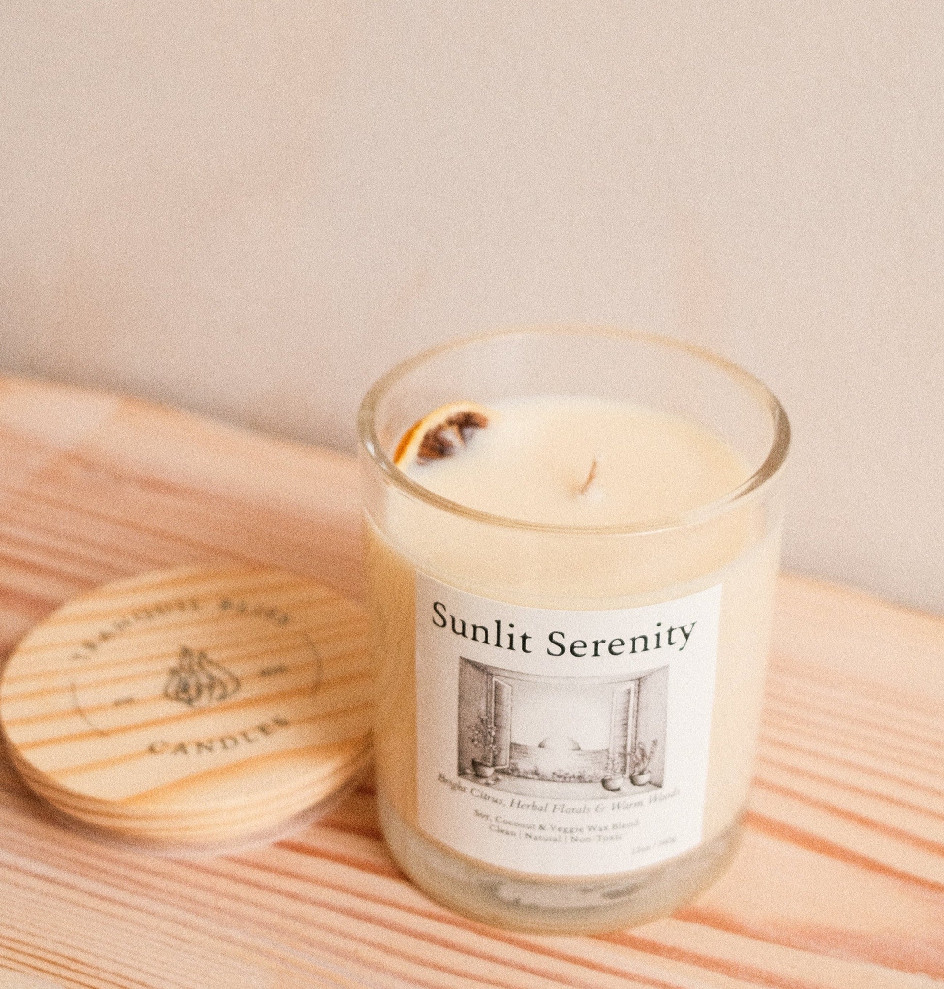 Embrace the tranquil bliss of a perfect summer day with Sunlit Serenity. Inspired by a balcony overlooking a Mediterranean seascape, this refreshing blend captures the essence of a sun-drenched meadow where vibrant citrus notes dance with gentle woods. Experience the invigorating scent of lemon zest and jasmine, harmoniously complemented by a subtle base of warm amber.
