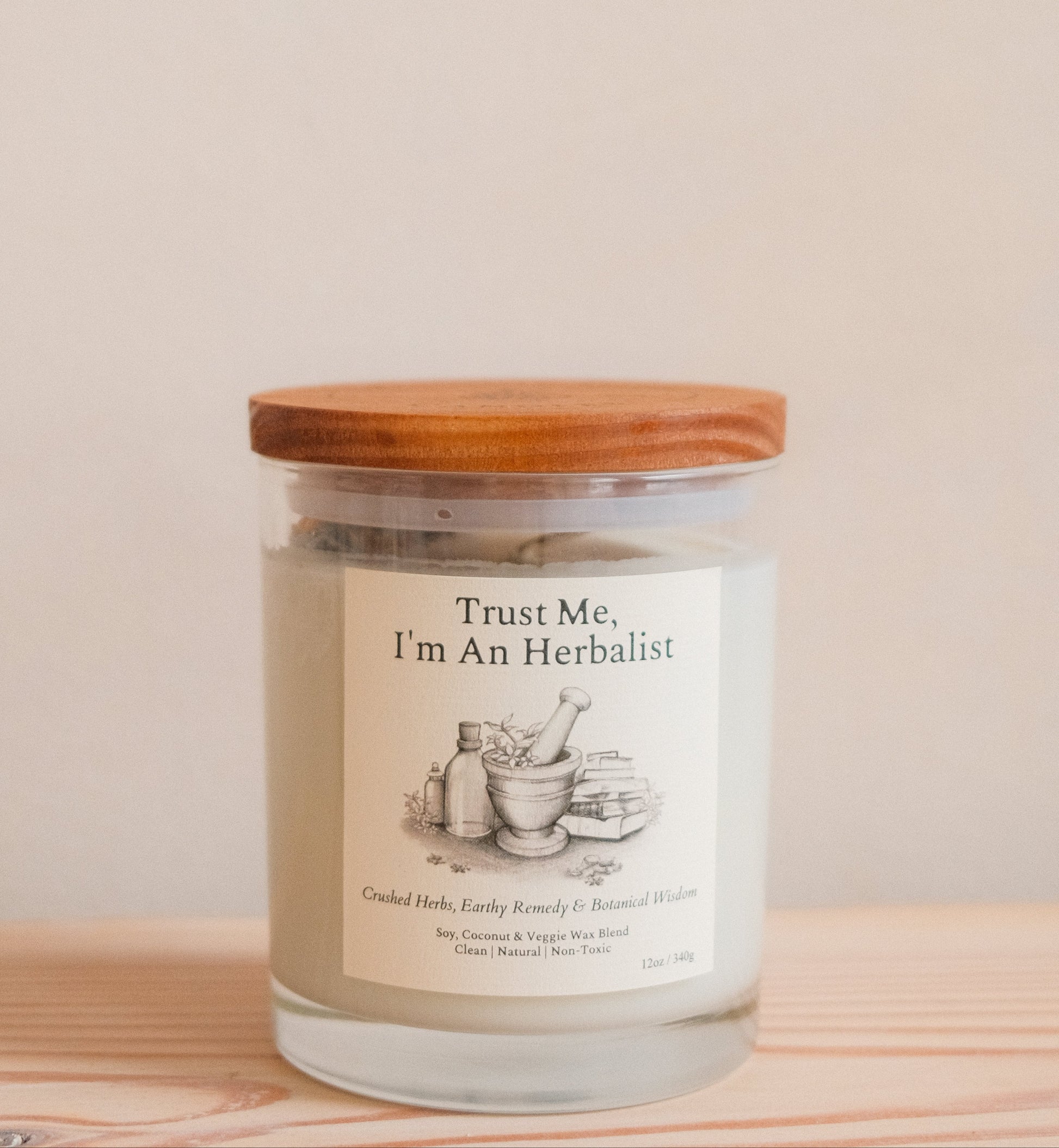 Trust Me, I’m an Herbalist is a reflection of what I believe - that nature provides what we need to feel whole. Inspired by the quiet wisdom of plants, this grounding blend of crushed herbs, green stems, and earthy botanicals honors the healing path of herbal remedies. Fresh, slightly spicy, and deeply calming, it evokes the feeling of stepping into a wild garden, guided by instinct and intention.
